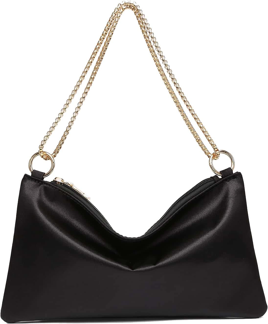 About this item Made of satin and alloy, with soft lining Metal Strap, Zipper Closure, Square Bag Perfect for dating, prom, cocktail party, evening out and club Please refer to size guide carefully before purchasing at below description